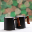 Trendovski skodelici v črni barvi z lesenim ročajem in...